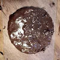 Smjörið brætt og súkkulaðinu bætt útí. Látið standa þar til súkkulaðið er bráðið samanvið.