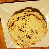 Hrært saman þar til jöfn áferð. Hnoðað í hæfilega stórar kúlur sem svo eru flattar út. Bakað á þurri pönnuköku pönnu. |